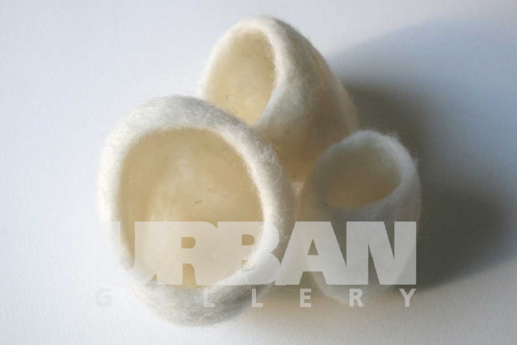 A poetic composition of wool nests sheltering stones cleanly polished by running water. The duality of these materials lays precisely in its different functions, to shelter and be sheltered. A sensorial landscape which will certainly not yield an indifferent spectator.